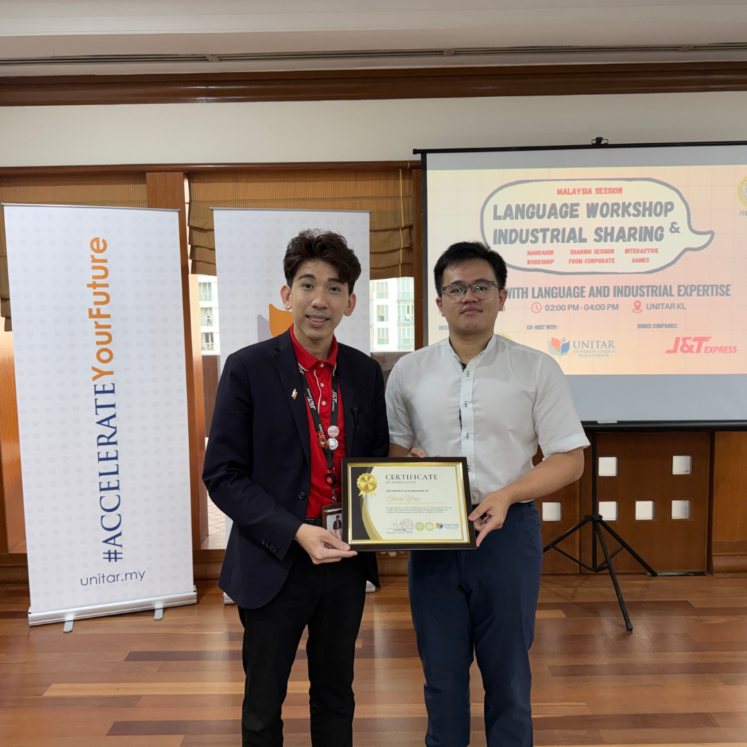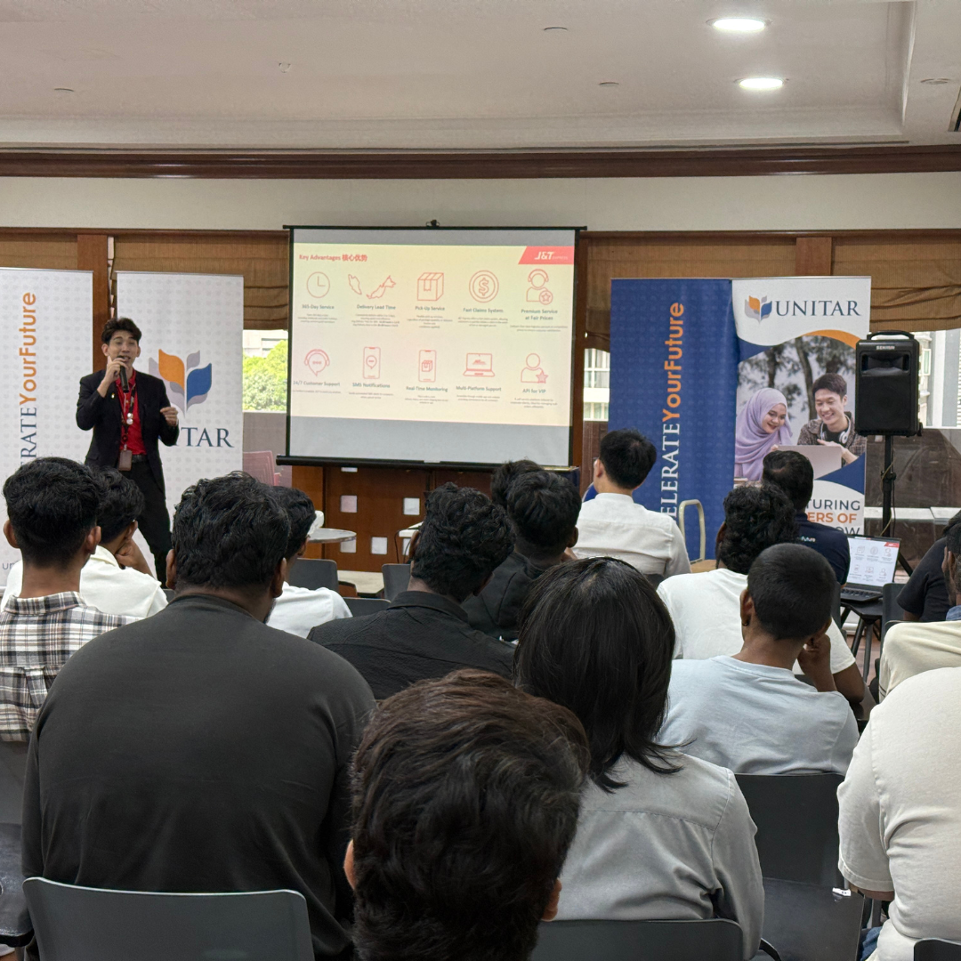 The event began with an opening speech by Mr. Rv. Lingam, Senior Lecturer & Program Leader (Logistics) at UNITAR. This was followed by an insightful industrial sharing session by Mr. Steve Yap, Public Relations Manager from J&T, who shared valuable perspectives on the logistics industry and career opportunities with students.