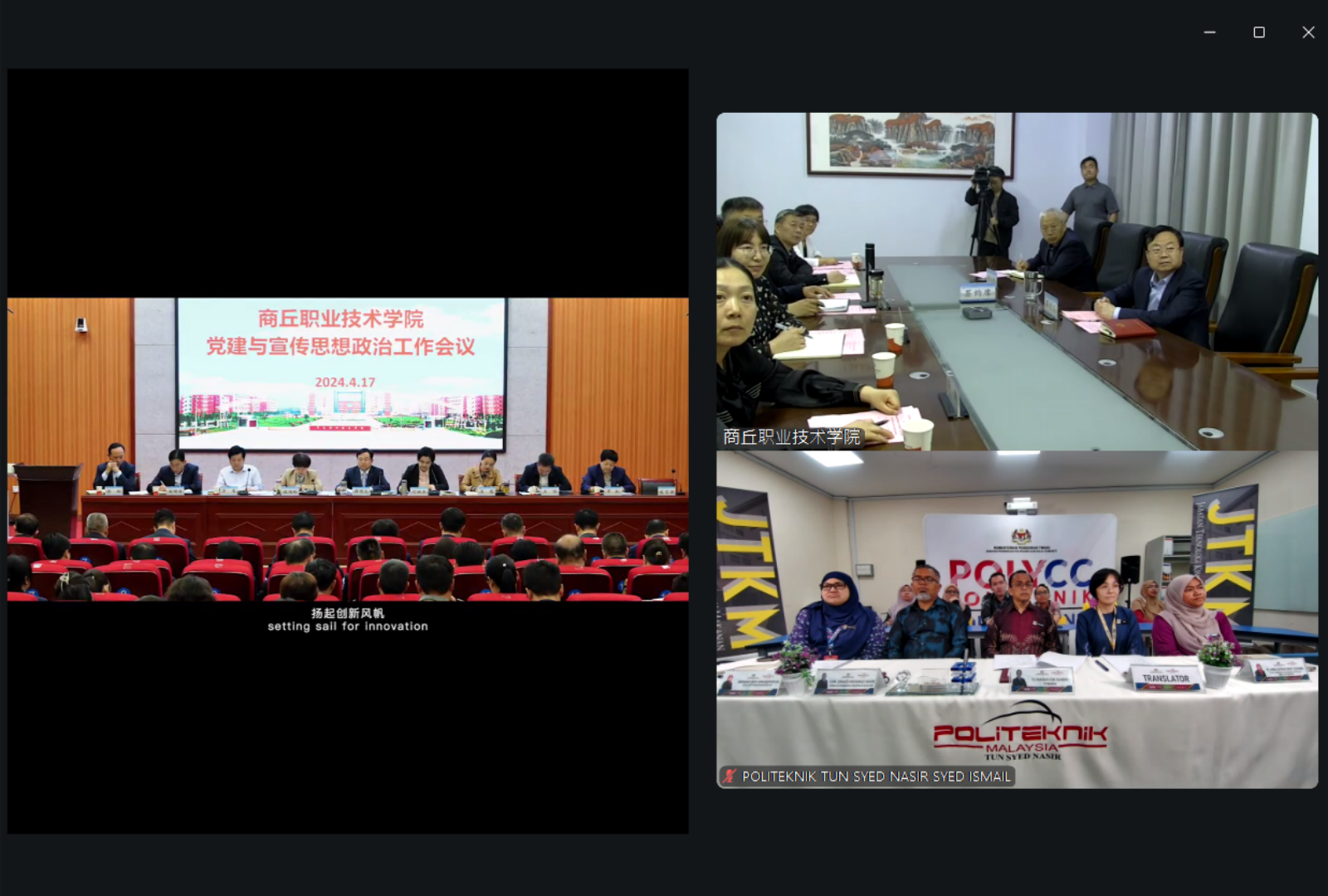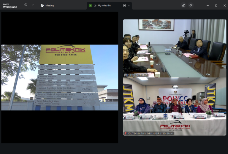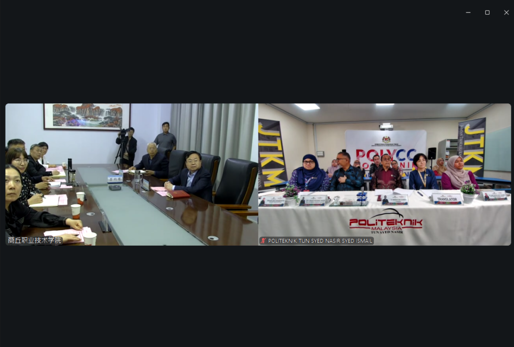 On 30 April 2026, Politeknik Tun Syed Nasir and Shangqiu Polytechnic successfully held an International Collaboration Meeting, marking a meaningful step forward in strengthening China–Malaysia vocational education cooperation. The session opened with a warm welcome to distinguished guests from both institutions, including President Mr. Xue Mingzhi from Shangqiu Polytechnic and Director Ts. Hamdan bin Samdin from Politeknik Tun Syed Nasir, highlighting the importance of this cross-border academic engagement.